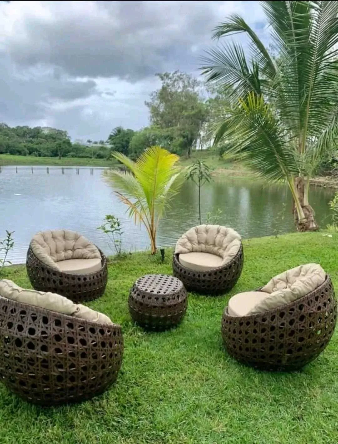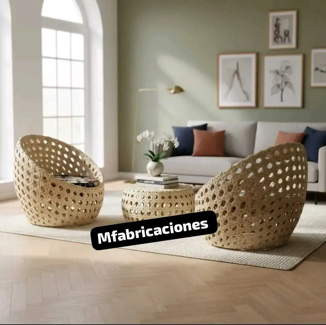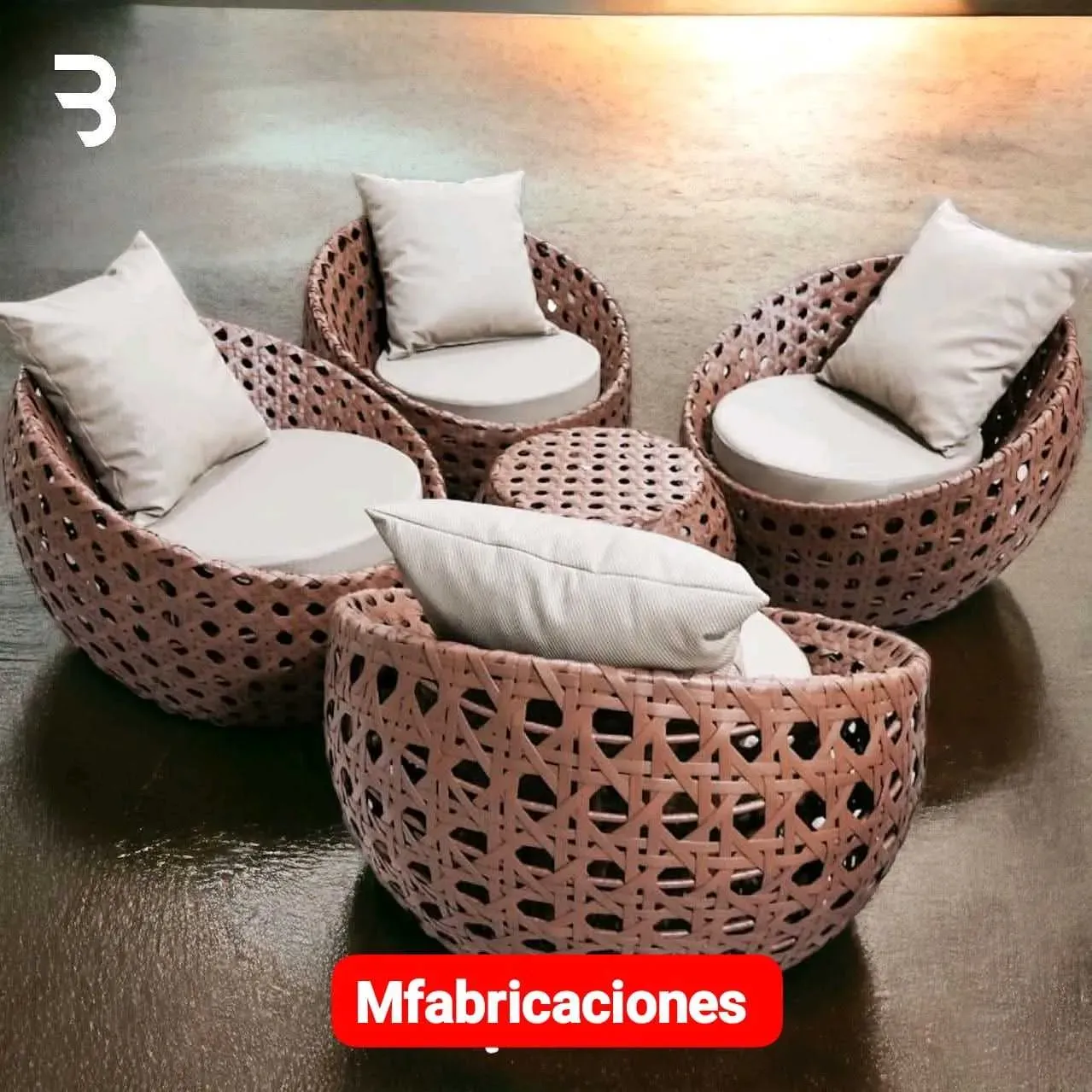 Este juego de muebles de exterior está fabricado en fibra sintética rattan, ideal para decorar tu jardín o terraza. Resistente y duradero, este mobiliario de rattan sintético es perfecto para disfrutar al aire libre. ¡Dale un toque elegante a tus espacios exteriores con este conjunto de muebles!